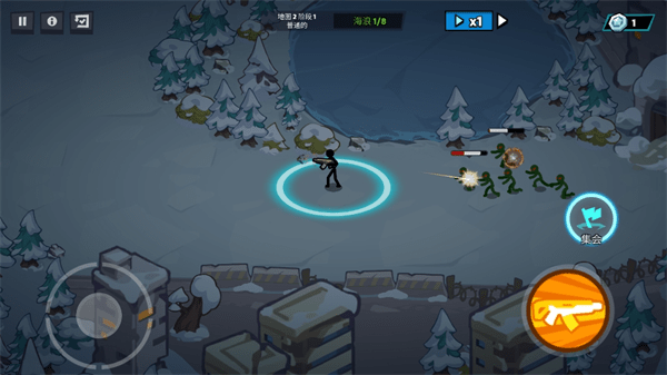 4、滑动轮盘去打僵尸僵尸只有晚上才可以出没,可以利用走位躲避僵尸攻击打完全部僵尸获得胜利。