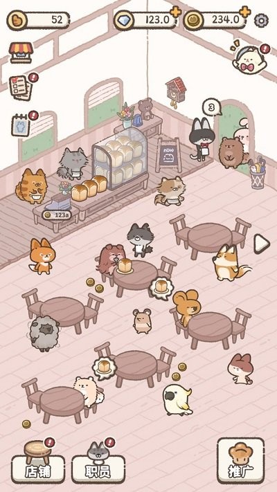 雇佣员工:雇佣各种可爱的动物员工,帮助您欢迎和娱乐客户。每个员工都有自己的特殊能力,例如加快甜点制作、提高客户满意度等。合理安排他们的工作可以提高您的业务效率。