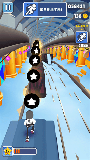该游戏版本是根据圣彼得堡进行魔改的,地面被大雪覆盖,主角跑过的地方会把积雪扫开,所以也被称为扫雪机版本。在这个版本中有着丰富的圣诞元素,我们跑酷时还会有礼物特效,并且金币也修改成了黑白色的星星金币,搭配上地图显得非常有特色。地铁跑酷Easft仿外网雪地中玩家是可以直接有良好的体验。