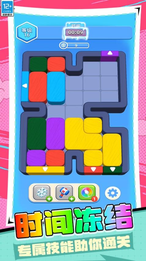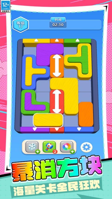 2、内置多样化的任务目标系统,玩家需通过灵活移动与组合方块,完成各类淘汰任务以获取丰厚通关奖励。