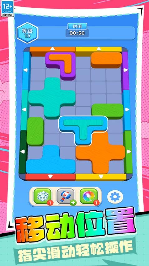 1、采用直观的指尖点击操作模式,玩家只需轻触屏幕即可移动与组合方块,实现简单流畅的交互体验。
