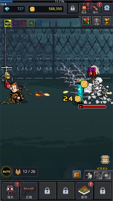 不断升级加强手下队伍和武器,打造最强的英雄部队,杀死僵尸。