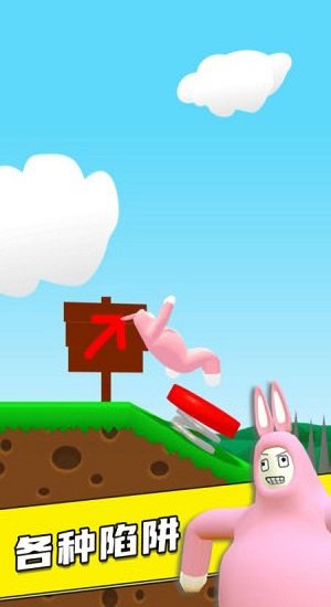 1、你在游戏中操控的是一只只魔鬼肌肉兔,它们的体型非常强壮,玩家需要面对各种危险的地形,展现你的强大跳跃能力