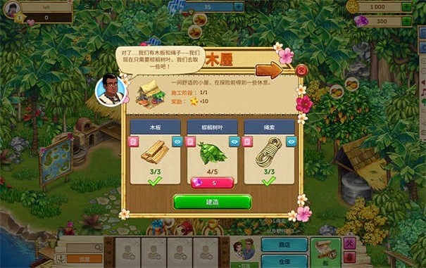 游戏中有各种各样的主要任务,开始玩游戏时需要建造一个仓库来收集各种材料。