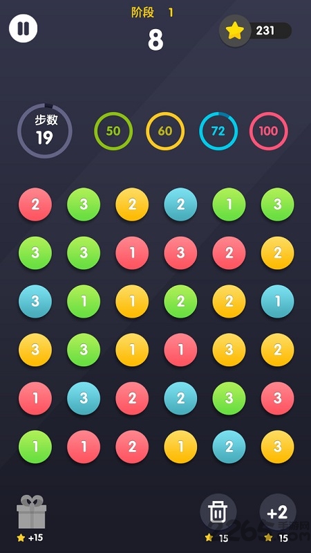 二、套环消除:只有将套环填满或者三点连成一线才能消除,新玩法,来试试吧!