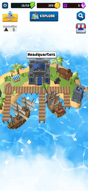 2、初始的小帆船仅配备两个货舱,玩家可通过积攒贝壳币将其升级为拥有三层甲板的商船。