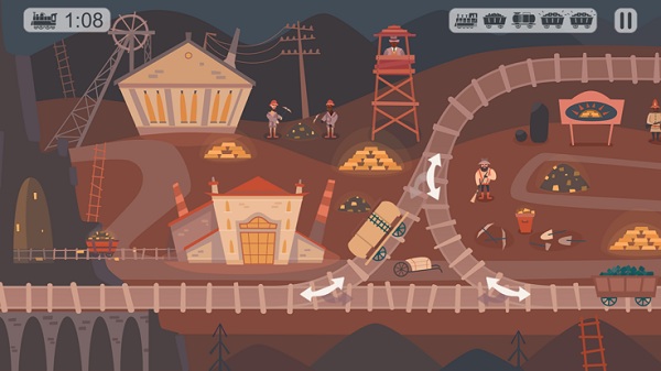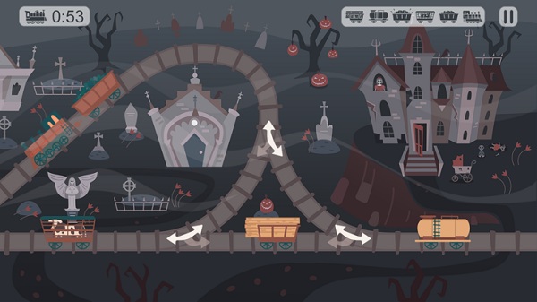 玩家可以连接和断开货车,同时用机车和轨道箭头移动火车,直到一切都在它应该在的位置,然后将火车开到正确的一侧以完成关卡。