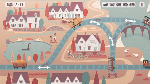 在每个谜题中,玩家控制机车和铁路轨道箭头,以便将货车推拉成正确的模式。