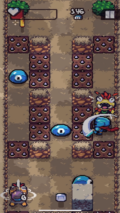 爵士发现自己被困在了被诅咒的森林里!幸运的是,他有可靠的剑和炸弹袋来抵御危险的怪物。他将不得不深入森林与怪物战斗并避开陷阱。他可能会在途中找到宝物卖给掌柜。不过我们的骑士不能在原地呆太久。有黑暗诅咒跟着他!最好远离。