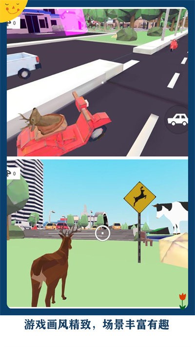 鹿哥城市侠盗模拟是魔性的模拟鹿游戏,具备独特的画面效果,你就是这里的最佳破坏者,发挥你的想象来创造更多的游戏玩法,尝试不断地奔跑冒险,解锁更多的冒险故事。