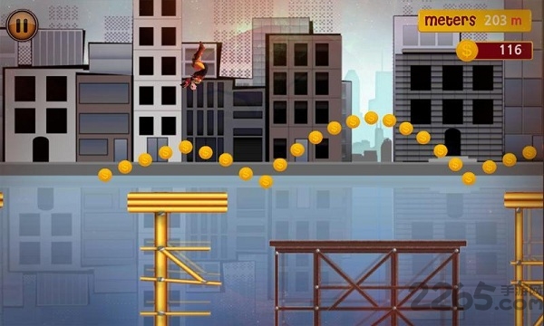 成为一个超级英雄,证明自己在为您的手机这个新的游戏。这是没有任务的普通男人,因为你必须从一个建筑物跳到另一个以超音速的速度。越过城遗址,收集所有的硬币,你可以和要小心不要摔倒,因为如果你这样做,对恶棍的战争将会丢失。下载我们的游戏中获得亚军,成为打击犯罪的时候了。享受您最喜爱的超级英雄的特点在一个令人难以置信的比赛。