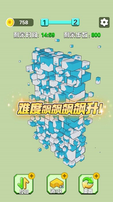 我的积木城堡是一个消除益智类的休闲玩法,每个关卡都有不同的挑战和难度,你需要利用你的智慧和技巧,移除屏幕上的方块,以达到游戏目标。选择正确的方块进行移除,你需要仔细观察方块的位置,以避免其他方块堵死导致游戏失败。