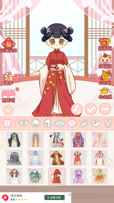 一款益智古装换装装扮游戏。游戏提供的衣服和配饰的都是古代的装扮风格,海量物品可供挑选,任你装扮自己的少女!