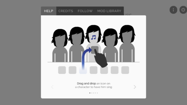 正常模式:通过拖拽20个角色图标至灰色小人触发节拍、人声、旋律等音效,组合成完整音乐。