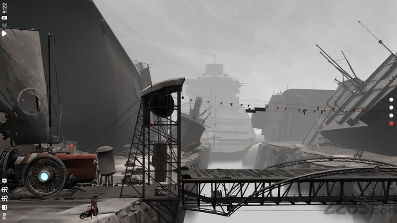 独树一帜的美术风格,硬要说像什么的话,可能有种《inside》的感觉,不过色彩层次更多些。废弃的城市、到处搁浅的船只、荒无人烟的干涸海床无一不在刻画一种末世的感觉,营造的氛围非常棒。