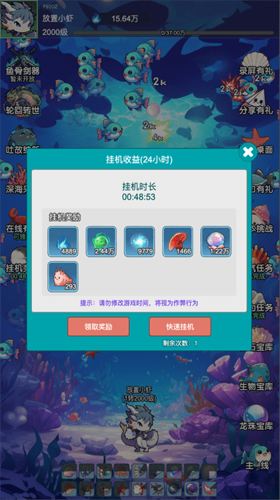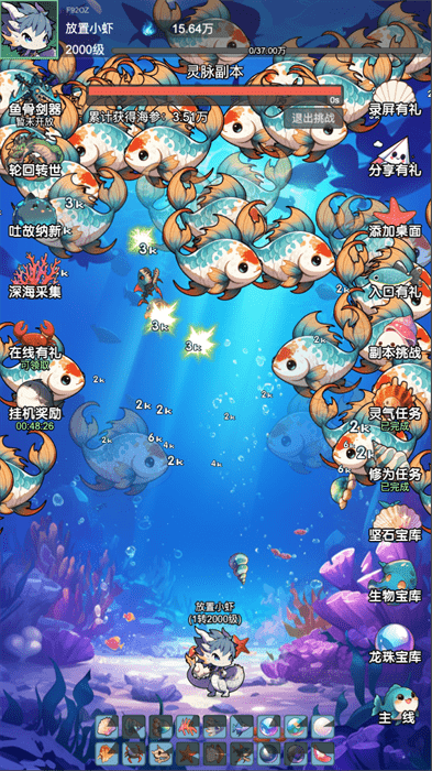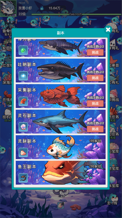 放置修龙安卓版采用二次元卡通风格打造的一个以海底世界为背景所推出的放置类修仙游戏。玩家只需通过挂机的方式就能够轻松完成升级,游戏提供了丰富的挑战系统,看看你最终是否能顺利修炼成仙。