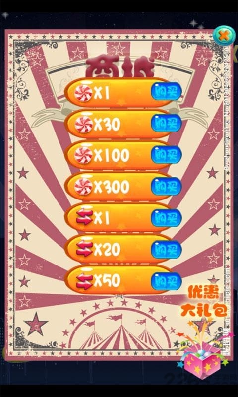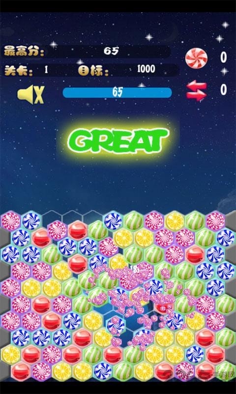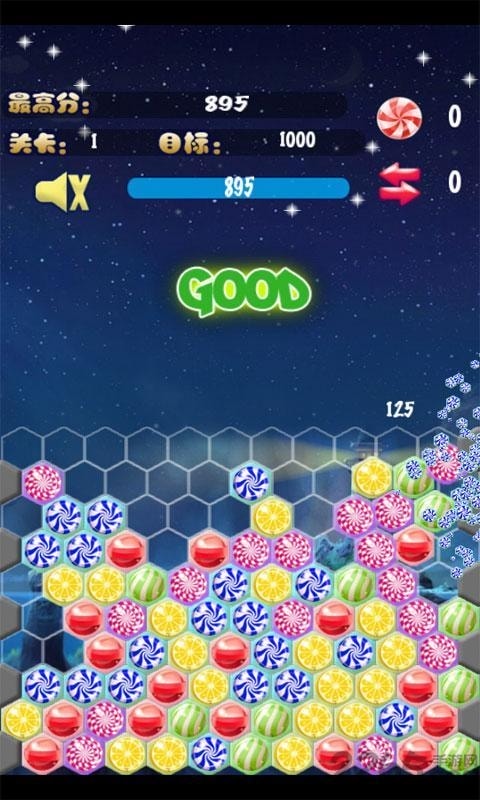 这是一个很锻炼脑力的游戏。如果相连的糖果更多则可以获得更多的积分。清脆的游戏声效碰撞声,很是动听。点击两个或更多相同的糖果,游戏没有时间限制,但是每一关有目标分数提示,玩家游戏时同时消去的糖果越多,就能得到越高分,最后剩下的糖果越少,得到的奖励越多。