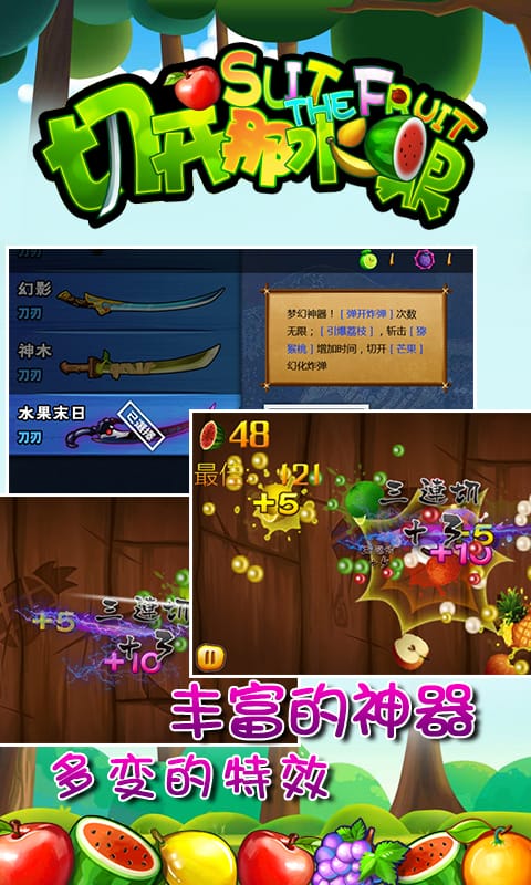 切开那水果,游戏延续了水果忍者的玩法,并且在此基础上不断的优化和完善,内容更多,玩法更加丰富,缤纷多彩的水果消除等你来体验!经典的手指动作游戏,新颖的元素,让你玩个不停!