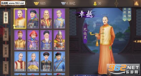 初始大臣有四个:洪承畴、张廷玉、纳兰明珠、和范文程,此四人分别是军、政、商、农方面的小能手,是圣上的左膀右臂,带领圣上步步取胜。同时,用银两为名臣升级会提升国力,快速升级,帝王等级每提升一级就可以在金銮殿举行科举考试,有机会钦点一位大臣为状元解锁该名臣。使用资质果可培养大臣资质,在校场PK中,资质越高的大臣战斗力会越强。