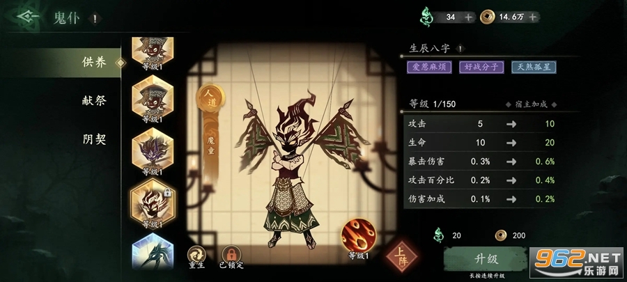 用于钟馗召唤。召唤有随机符咒用于升级符咒,符咒升到10级可以选分支很强力。升到10级别忘了选分支,在一个就是天书。这个游戏的核心就在于天书养成,120抽保底必抽到天书,3级天书质变。