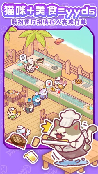 2、游戏会让猫咪变身厨师,他们会制作各式各样的食物来满足客人。游戏中的猫咪们会化身厨师。