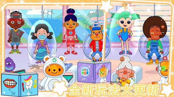 迷你小镇超级护士游戏是一个超有趣体验休闲的探索玩法,供您探索和创造自己的故事:从细菌实验室到直升机救护车,将您带到未来的诊所,这个现代化的医疗中心在建筑的每个部分都充满了新的互动技术,在那里您将遇到7个作为医生和医务人员的儿童友好型机器人。从充满迷你游戏的大厅到科学实验室。