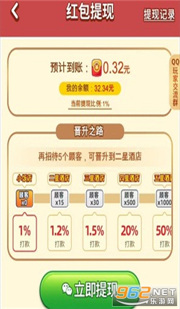 红包奖励按百分之一比例提现,15个顾客之后可以提升到1.2%的。