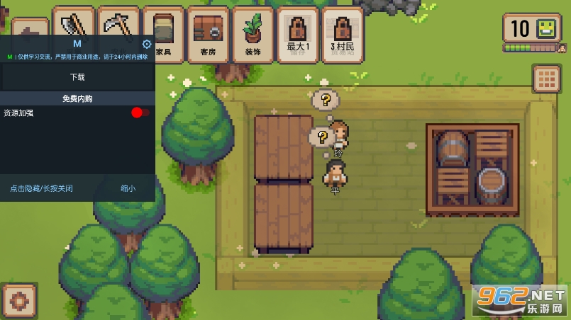 村民养成,乐趣无穷:见证小镇逐步壮大,培养性格各异的村民。指导他们提升技能,让工作更高效、更聪明。