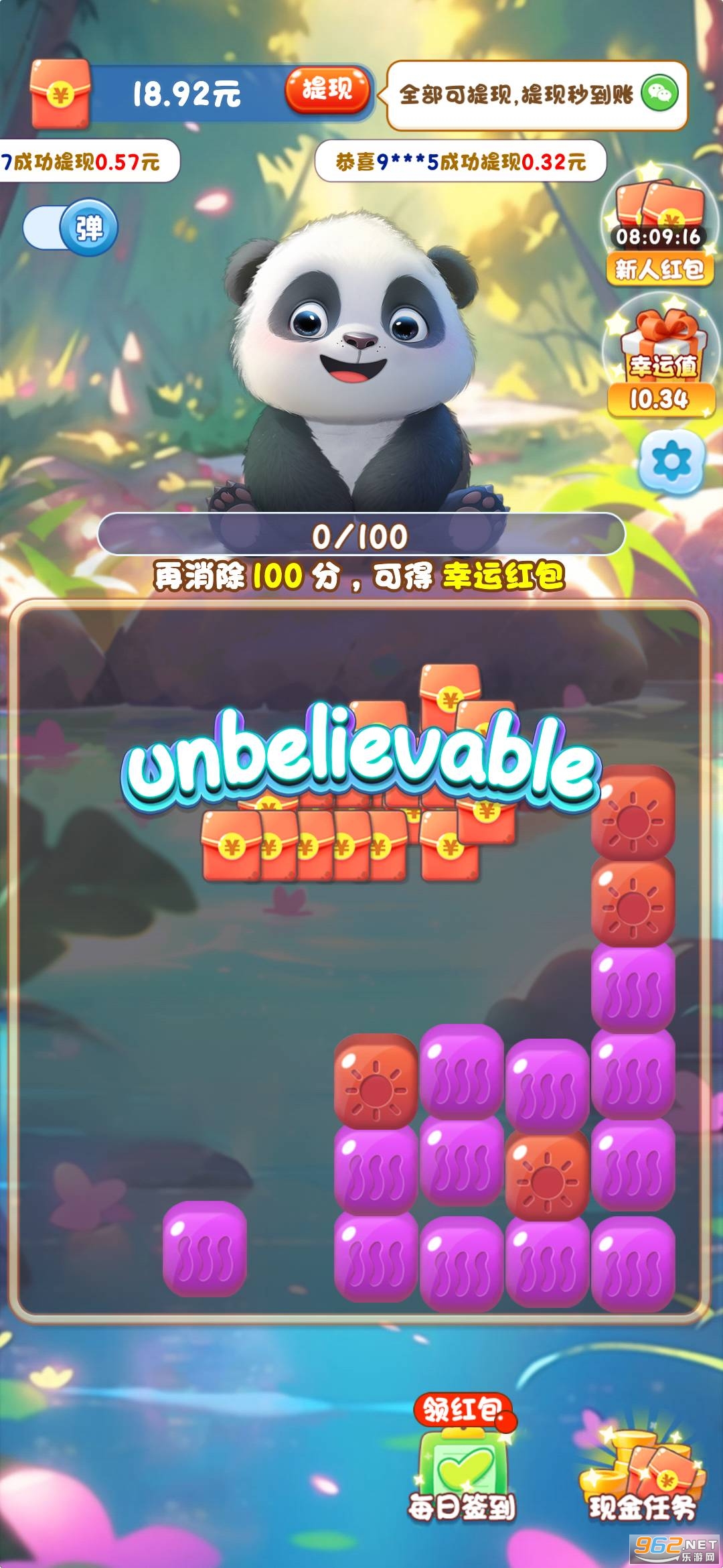 1、熊猫滚滚乐红包版是一款非常有趣的休闲消除游戏,玩法简单易上手,适合各个年龄段的玩家。