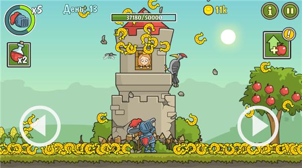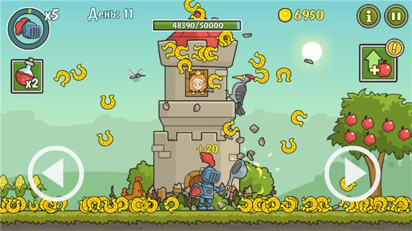城堡破坏者是一款非常好玩的手游,玩家在游戏中将会操控一个身穿盔甲的骑士,在这里你需要不断地前进,拾取各种水果来增强自己的力量,并且还有一路的金币可以获取,利用金币就能换食物和寻找伙伴,十分有趣。并且游戏采用了横版卡通风格,不仅操作简单,而且能够带给你许多的乐趣,游戏中只需要操控角色左右即可,遇到怪物会自动攻击。