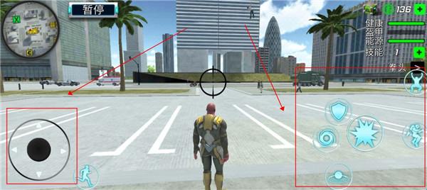 4、然后我们返回游戏界面,左边的摇杆是控制方向的,而右边则是我们的各种技能