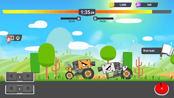 呆萌的界面风格,简单易上手的游戏体验,通过战斗升级、解锁和积累零配件,改装自己的战车,充分发挥想象力和创造力;让你和全世界的玩家竞争!透过粉碎你的对手以及完成每日任务赚取奖励。