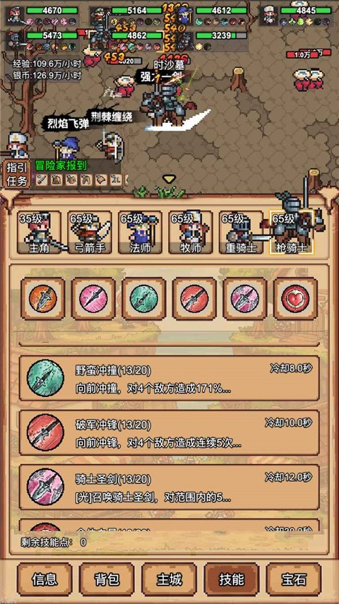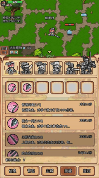 4、点击技能按钮可以让你的英雄学习不同的招式,每次升级都会获得一个技能点用来学习技能。
