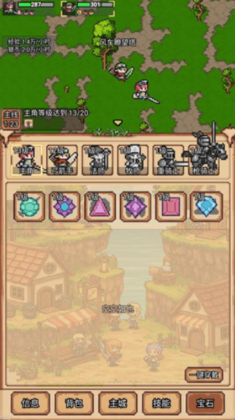 像素冒险村是一款像素风冒险养成手游,玩家将组建六人小队在各地图中进行冒险,你需要通过不断挂机战斗来获取各种资源进行角色养成,体验慢慢成长、逐步变强的趣味。游戏设有战士、牧师、法师、弓箭手、枪骑士、重骑士等经典职业,玩家后期可通过英雄徽章逐渐解锁这些职业,进行多元路线的养成。