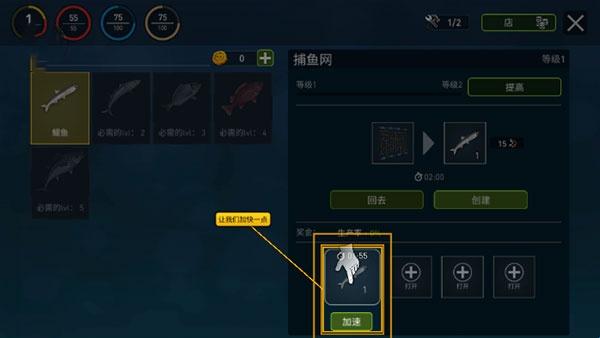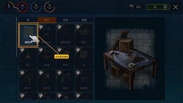 2、获取物资,制作武器,加固木筏或者建造堡垒;