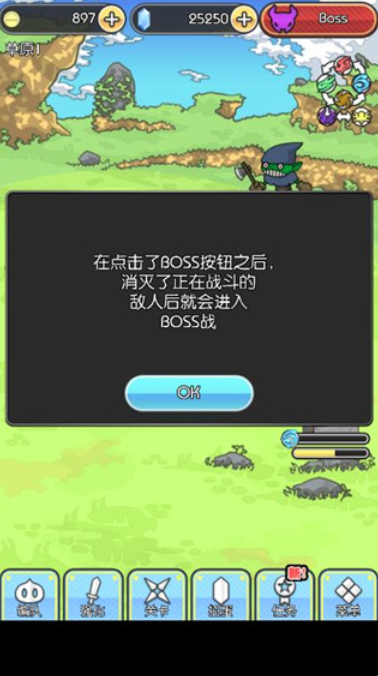 4、在点击了boss按钮之后,会消灭现有敌人,然后进入boss战。