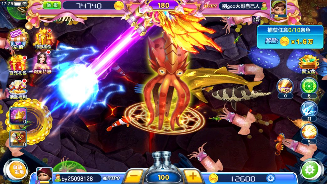 4、完美重现街机室多人联机捕鱼,真实联网,万人在线!