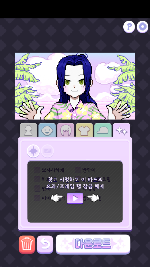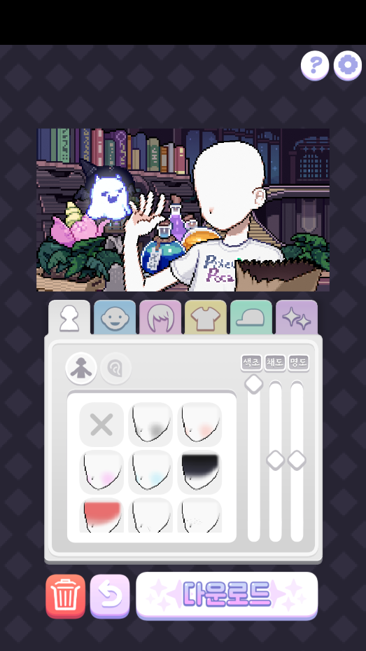 《pixelpoca》是一款像素风格休闲填色类游戏,游戏采用了清新像素的画风设计,游戏非常的粉嫩,梦幻,软萌,用户可以在游戏中自由的发挥你的创意,为你的二次元少女,换装,搭配造型,还能上色,非常的有趣,下面为大家带来游戏下载!