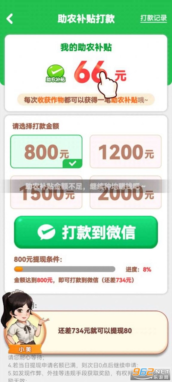 正常人都不会想着只赚个几块钱,都是冲着800元游戏“助农补贴”来玩向往的退休生活游戏,不过想要顺利提现到账800元,那是相当困难的。