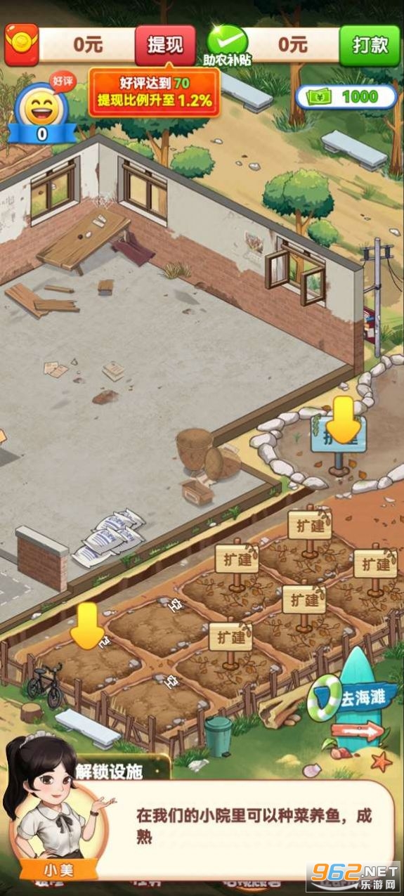 向往的退休生活游戏就像前段时间被网友揭露过“有机菜市场游戏”骗局差不多的,只不过现在的红包游戏都多了一个低门槛提现,鼓励玩家玩下去,游戏开发者目的不是让用户充钱,而且叫玩家多看广告。