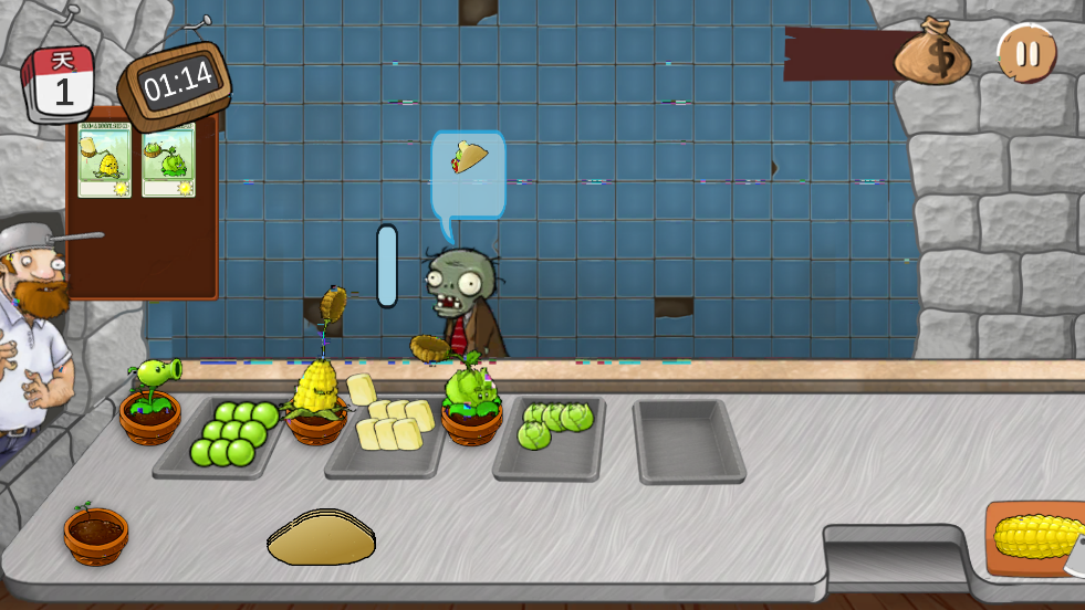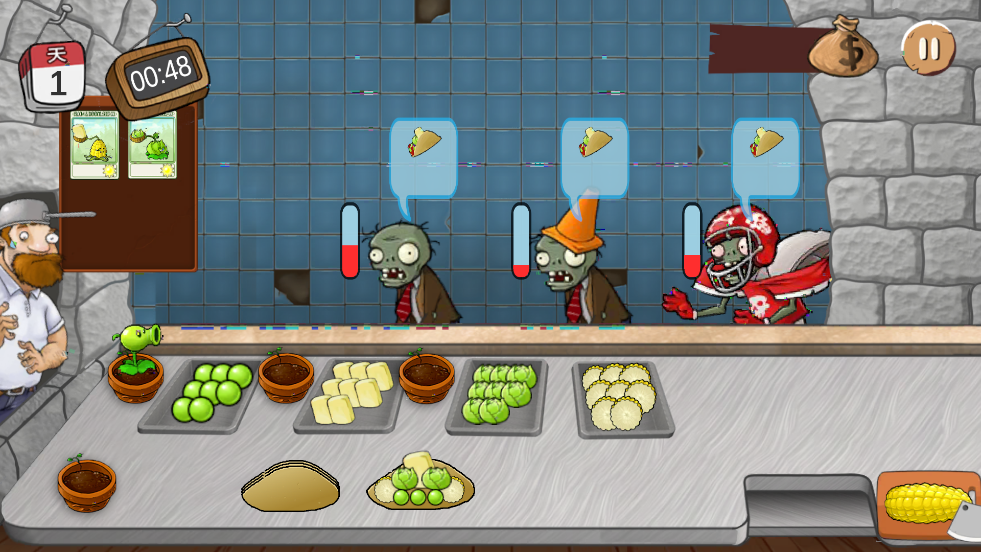巨人僵尸可以扔出小鬼僵尸,可以将柜台的钱偷走,相当于原游戏里面小偷角色