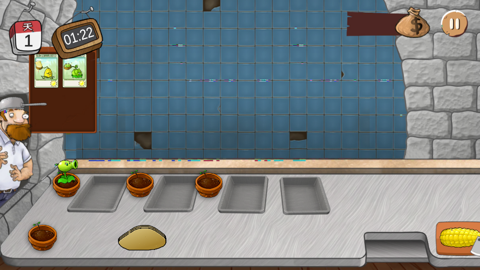 点击【戴夫】可以打开植物,将植物拖动到托盘上