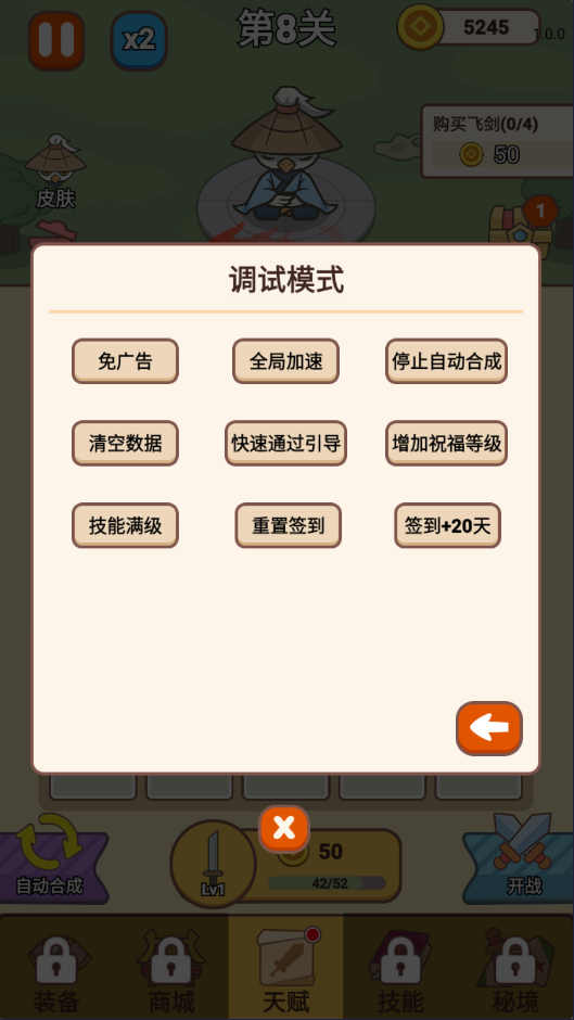 宝剑合成:通过简单的拖拽操作,将两把相同等级的宝剑合成为更高级的宝剑。合成后的宝剑拥有更强的攻击力和更高的飞舞速度,帮助你轻松应对各种挑战。游戏战斗主线关卡:游戏设有丰富的主线关卡,每个关卡都有独特的敌人和挑战。随着关卡的推进,敌人的实力也会逐步提升,考验玩家的策略和宝剑组合能力。