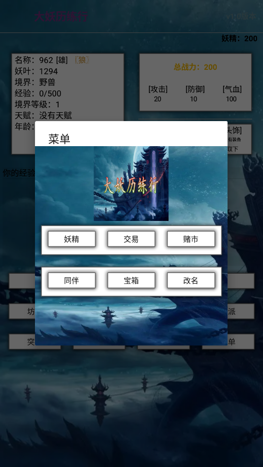 《大妖历练行》是一款充满奇幻色彩的文字修仙游戏。在游戏中,玩家将扮演妖兽世界中一个不起眼的小猛兽,偶然间开启灵智,踏上漫漫修行之路。你将在这个神秘而广阔的世界中,历经重重考验,学习各种法术,与众多妖兽交流,最终成为一代妖仙。游戏采用纯文字形式,让玩家沉浸在修仙的奇妙旅程中。