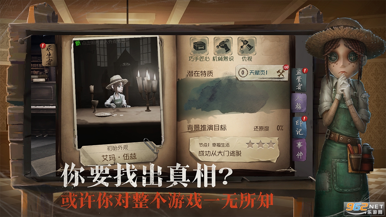 玩家将扮演侦探奥尔菲斯,在收到一封神秘的委托信后,进入恶名昭著的庄园调查一件失踪案。在进行证据调查过程中,玩家扮演的奥尔菲斯将采用演绎法,对案情进行回顾。在案情回顾时,玩家可以选择扮演监管者或求生者,展开激烈的对抗。而在调查的过程,无限接近事实时,却发现越来越不可思议的真相。