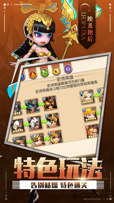 放置休闲英雄系卡牌,选择了大众较为熟知的经典英雄。但与同款游戏单一题材不同,《幻世契约》选择了大乱斗模式,将三国、西游记、西方魔幻等古今中外的英雄人物拉入同一战场。想知道剑圣和大圣谁是最强战神吗,赶快一起进入游戏去了解吧!