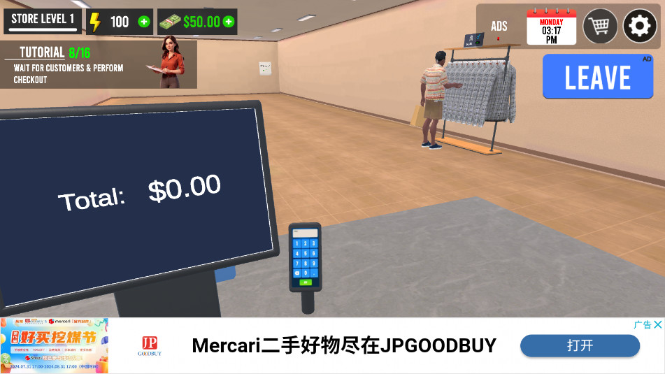 欢迎来到《我的服装店模拟3D》,这是一款终极服装店模拟游戏,您可以在其中将时尚梦想变成现实。潜入时尚零售世界,体验经营自己的服装店的快感。无论您是服装游戏的粉丝,还是在模拟器游戏类型中寻找新的挑战,这都是您的完美游戏!