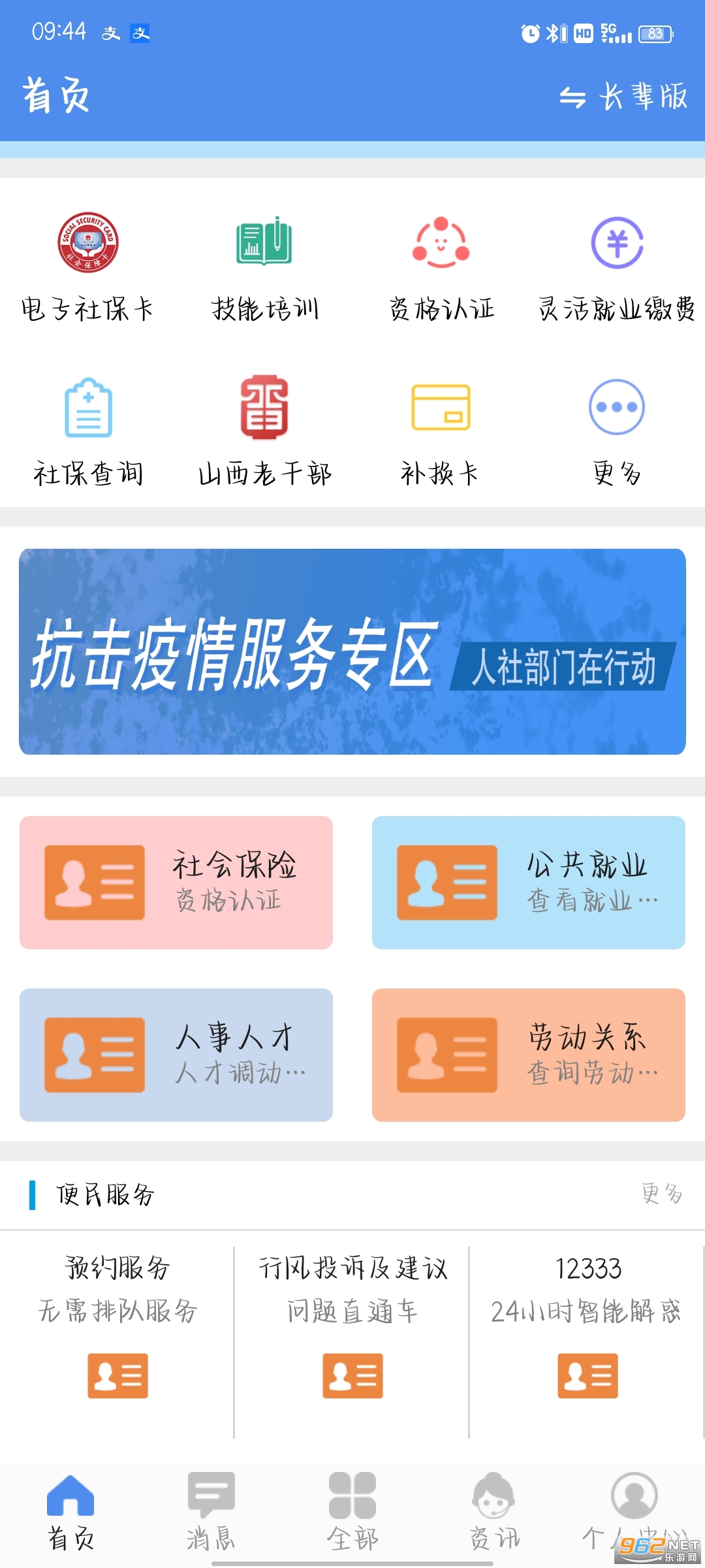 提供线上资格认证、社保卡挂失与解挂、补换卡预约、社保信息查询、医保支付 、社保缴费等业务,百姓足不出户就可以在手机上办理各种人社业务,服务的便捷性 得到极大的提升。