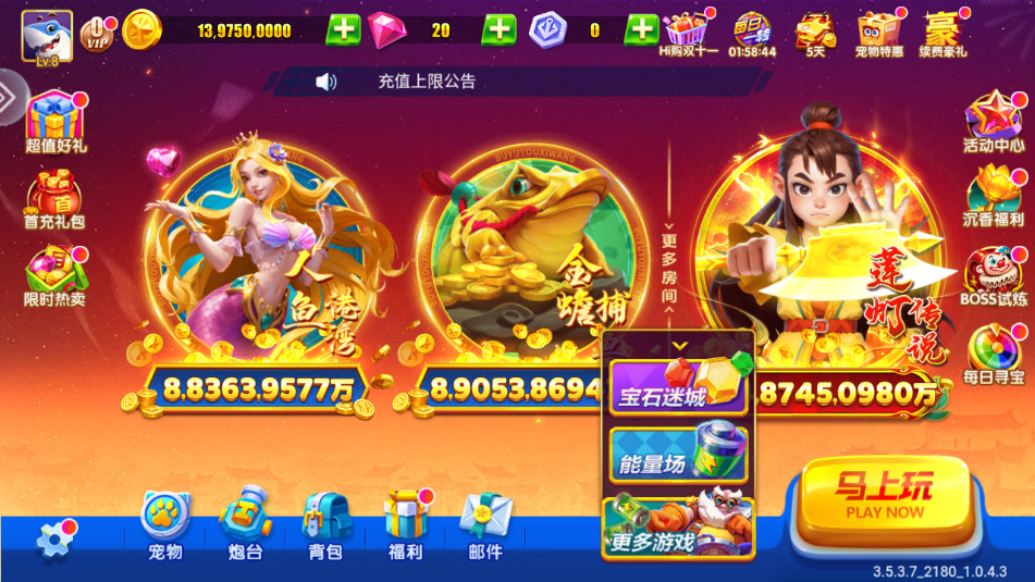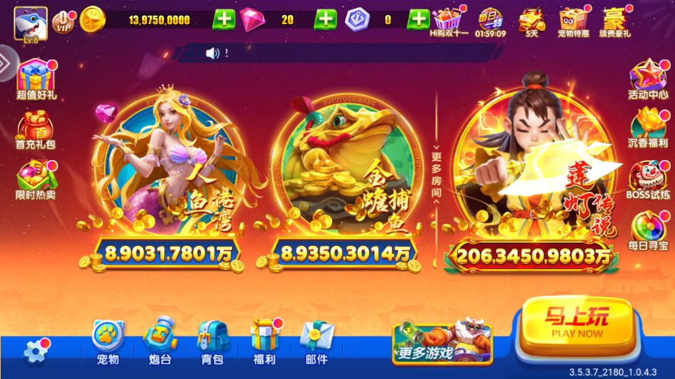 2、街机千炮完美移植,更高倍率,更多BOSS!