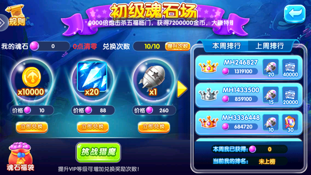 2、金币不多时,建议多捕获小鱼,慢慢积累金币,等到积累一定程度之后,一般鱼群也刚刚好出现,这个时候一定要把握好时机,将鱼群收入囊中,使自己的财富更进一步,然后把目标对准BOSS,一步一步往高处走。